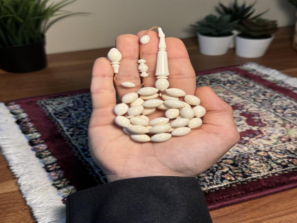منذ القدم، كان عاج الفيل رمزًا للفخامة يُستخدم في تزيين القصور والحلي المخصصة للملوك والنبلاء، بفضل صلابته ومتانته وجماله الطبيعي. نقدم لكم سبحة استثنائية مصنوعة من عاج الفيل الأفريقي, تمت خراطته بعنايه ودقه عاليه